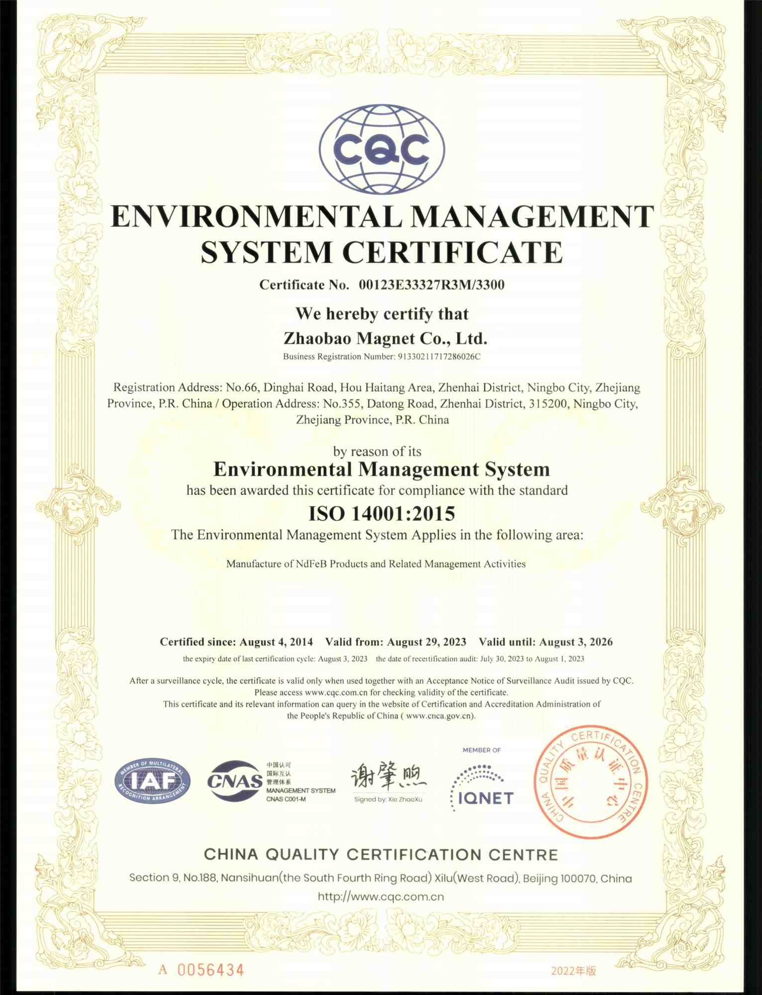 Nuestros productos de imanes de neodimio cumplen plenamente con los estándares internacionales, certificados por IATF16949 (industria automotriz), ISO9001 (gestión de calidad), ISO14001 (gestión ambiental), ROHS, REACH, CE, CPC, EN71, ASTM y CHCC. Estas certificaciones confirman que nuestros imanes de neodimio cumplen estrictos criterios de seguridad, medioambientales y de rendimiento, lo que los hace adecuados para exportar a Europa, América del Norte y el Sudeste Asiático sin barreras regulatorias.