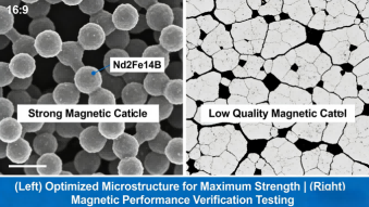 Nuestrofuertes imanes terrestresLogre una energía magnética superior a través de la alineación optimizada del cristal Nd2Fe14B durante el proceso de sinterización, lo que da como resultado valores de remanencia (Br) de hasta 1,48 T y coercitividad intrínseca (Hcj) superiores a 25 kOe. A diferencia de los imanes estándar, utilizamos un control preciso de la distribución del tamaño de las partículas de polvo (3-5 μm) y la orientación del campo magnético durante el prensado para maximizar el producto (BH)max, asegurando la máxima fuerza magnética en la aplicación final.